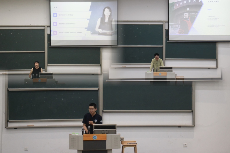 随后,陈斌峰老师聚焦核心培养目标与特色教学模式,结合案例分享提升语言能力的方法。紧接着王静老师则以自身求学、教学经历为引,为新生们传递学习与成长感悟。