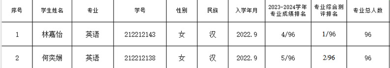 经外国语系评审小组按照评审办法,拟推荐国家奖学金和国家励志奖学金学生名单如下: