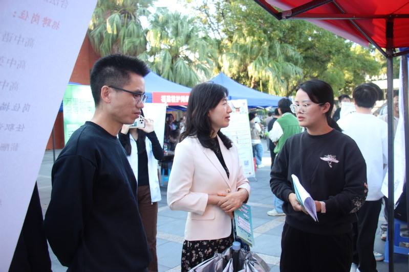 为搭建校企精准对接桥梁,助力同学们打通从校园到职场的最后一公里,11月14日,由福州大学至诚学院学生工作部(处)、福建青年人才开发中心主办,福州大学至诚学院人文艺术系、经济管理系、外国语系承办的“千校万岗,就业有位来”2025年秋季毕业生专场招聘会,在福州大学至诚学院学生工作部(处)办公楼前广场顺利举行。学院党委副书记林文麟、学生工作部(处)相关负责人、各系主任、党总支书记、团委书记及毕业班辅导员等一同到场,深入指导毕业生就业工作。