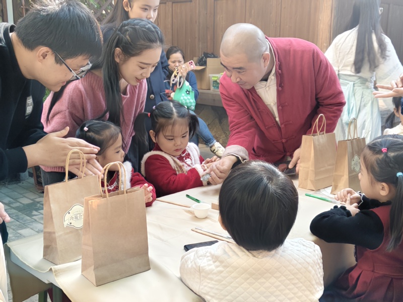 在福州大学至诚学院外国语系志愿者的引导与协助下,亲子家庭共同走近冷凝合香这项传统技艺,沉浸式体验非遗文化的魅力,感受传统工艺与亲子互动交融的温馨氛围。活动伊始,外国语系的志愿者们向家长和孩子们介绍了冷凝合香的工艺特色。同时也通过实物演示,帮助每一个家庭建立起对这项非遗技艺的初步认知。