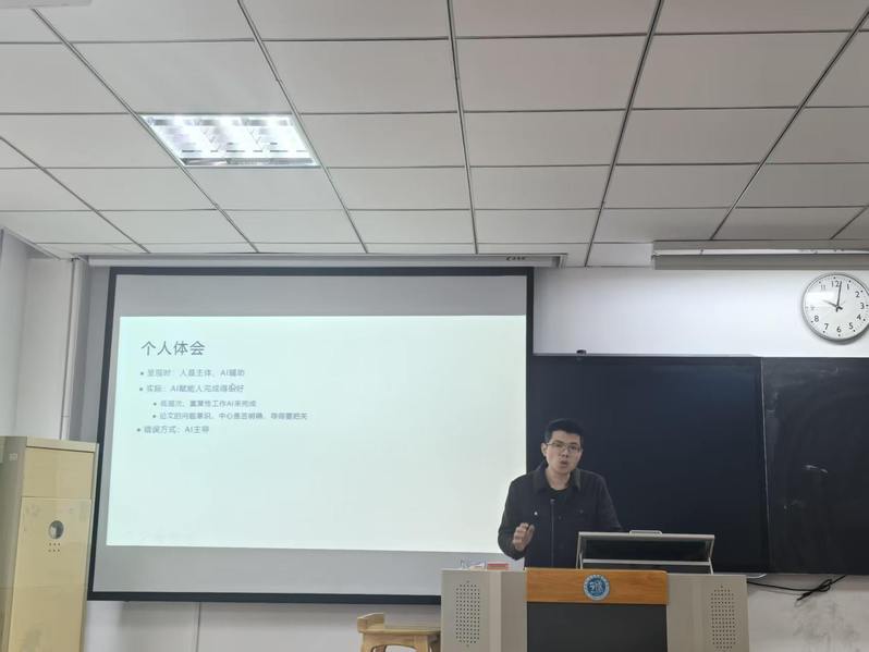 英语教研室主任陈斌峰副教授就AI在论文指导中的应用提出要求。他指出,AI可在语言润色、文献检索等方面提供辅助,但不能替代教师对学生创新思维与原创能力的培养。他强调,论文指导要坚持“辅助”原则,引导学生独立完成论文、坚守学术诚信。同时呼吁教师提升AI应用能力,合理运用技术,保持教学的深度与广度。