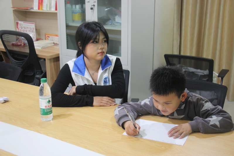 课堂伊始,志愿者们先带领小朋友们共同观看趣味字母歌视频,欢快的旋律、生动的画面一下子吸引了孩子们的目光,让大家快速熟悉了D、E、F三个基础字母的读音与写法,轻松融入英语学习氛围。随后,志愿者围绕这三个字母,逐一讲解以其开头的基础英文单词,用通俗易懂的语言拆解单词发音,一步步引导孩子们认读记忆。志愿者们耐心带领孩子们逐字母、逐单词跟读,细心纠正发音问题,不断鼓励孩子们勇敢开口表达。