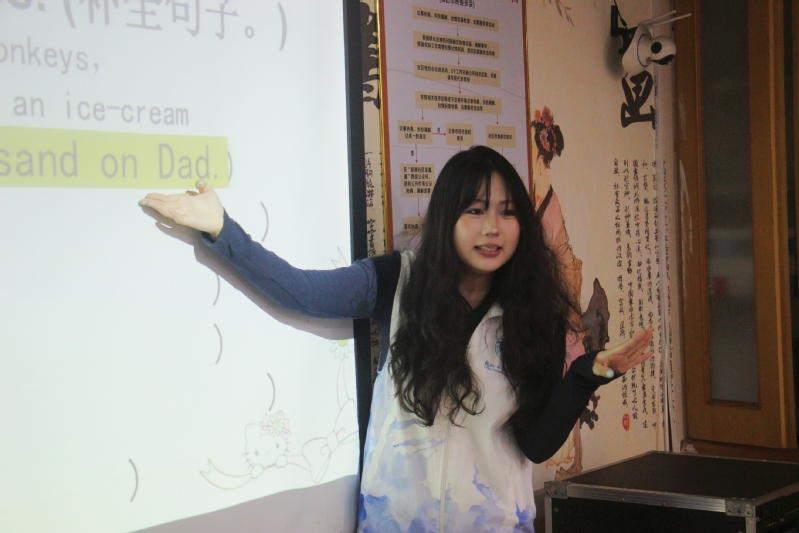 随后,团队带来贴合学习内容的简短英文绘本分享,将D、E、F相关单词融入趣味故事中,志愿者声情并茂地讲述,配合生动的语气和表情,牢牢吸引着孩子们的注意力,让大家在听故事的过程中巩固所学知识,感受英语的魅力。